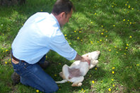 Colocamos las manos entrelazadas debajo del tórax y los levantamos sin que sus patas toquen el suelo. Tras mantenerlo en esta posición durante treinta segundos, podremos anotar el grado de aceptación de la dominancia del guía, al perder el control libre de sus movimientos.