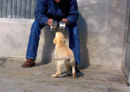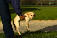 Acariciamos a los cachorros de labrador retriever con firmeza desde el cuello hasta la grupa cuando le mantenemos en pie podremos apreciar la aceptación jerárquica de nuestro dominio sobre él. Según la tendencia a mantenenerse estático o a saltar sobre nosotros, mordisqueándonos o incluso gruñendo.