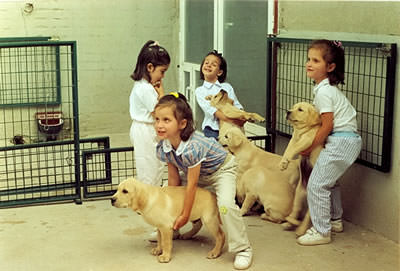 Nosotros hemos trabajado para que afronte esta situación con buena actitud y para que se adapte a ella lo antes posible. Con ese fin hemos establecido un programa de socialización temprana. Que se basa en presentar de forma paulatina a los cachorros de labrador retriever a distintas situaciones ambientales y de manipulación, por ejemplo ir en coche.
