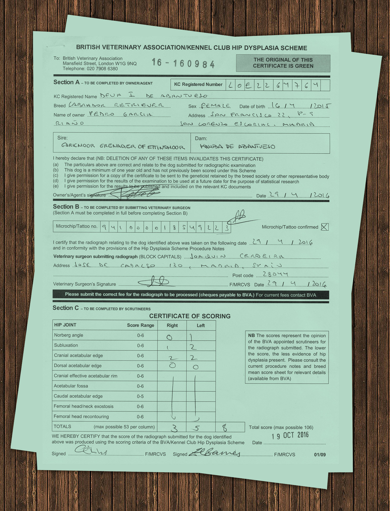 Certificado Oficial: Displasia de Caderas