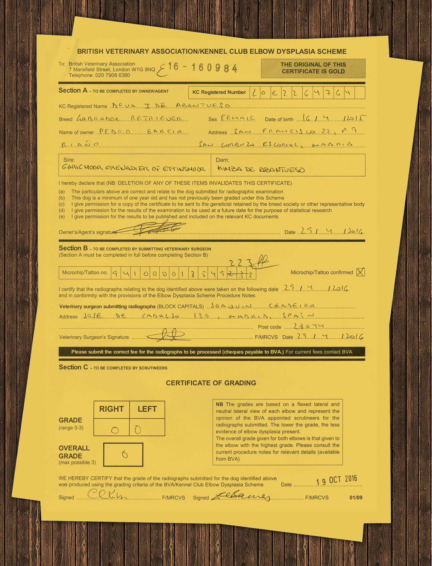 Certificado Oficial: Displasia de Codos