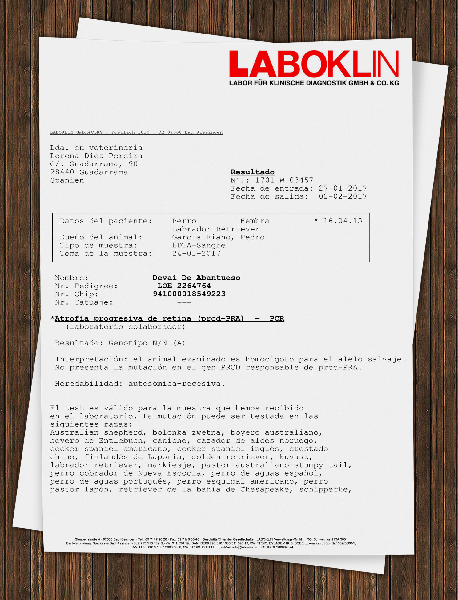 Certificado Oficial: Libre de Atrofia Progresiva de Retina