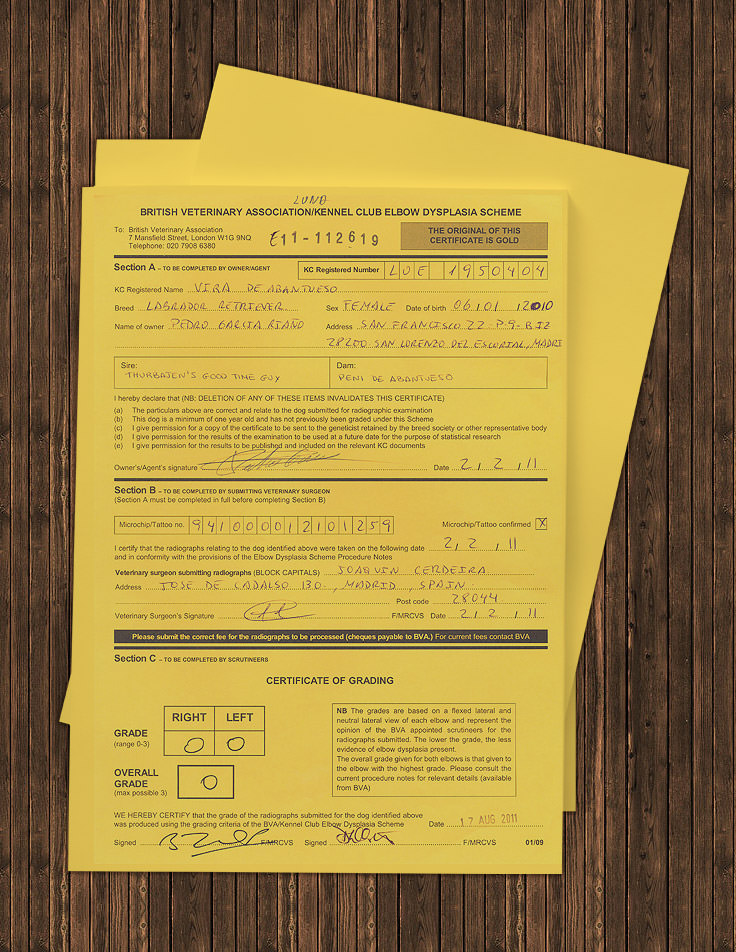 Certificado Oficial: Displasia de Codos