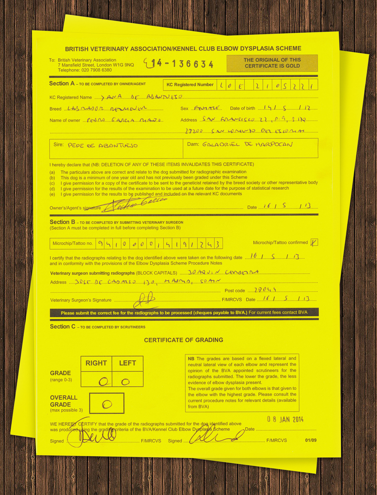 Certificado Oficial: Displasia de Codos