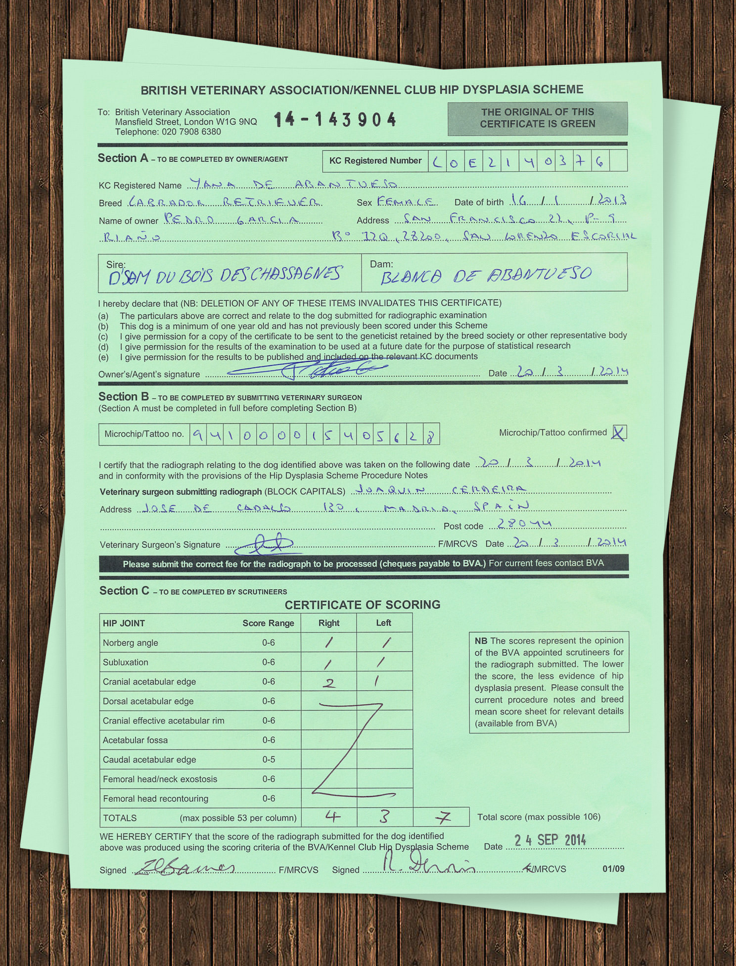 Certificado Oficial: Displasia de Caderas