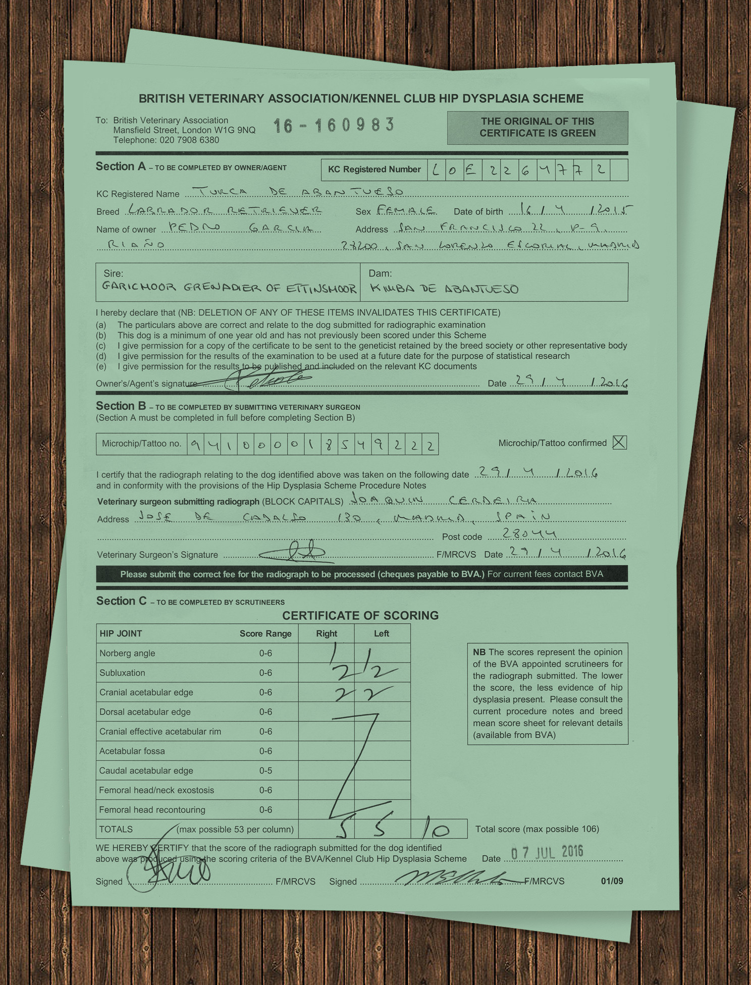 Certificado Oficial: Libre de Atrofia Progresiva de Retina